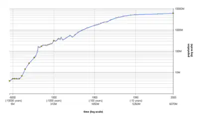 The increasing availability of DNA sequencing since the late 1990s has allowed estimates on Paleolithic effective population sizes.[4][5][6] Such models suggest a human effective population size of the order of 10,000 individuals for the Late Pleistocene. This includes only the breeding population that produced descendants over the long term, and the actual population may have been substantially larger (in the six digits).[7] Sherry et al. (1997) based on Alu elements estimated a roughly constant effective population size of the order of 18,000 individuals for the population of Homo ancestral to modern humans over the past one to two million years.[8] Huff et al. (2010) rejected all models with an ancient effective population size larger than 26,000.[9] For ca. 130,000 years ago, Sjödin et al. (2012) estimate an effective population size of the order of 10,000 to 30,000 individuals, and infer an actual "census population" of early Homo sapiens of roughly 100,000 to 300,000 individuals.[10] The authors also note that their model disfavours the assumption of an early (pre-Out-of-Africa) population bottleneck affecting all of Homo sapiens.[11]