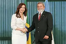 In August 2010, Cristina Fernández began to use her Twitter account (under the handle "CFKArgentina").[79] She also preceded the 39th Mercosur summit at San Juan where the trade bloc agrees to reduce customs fees [80] and signs a free-trade deal with Egypt[81]