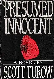 Presumed Innocent, published in August 1987, is Scott Turow's first novel.[1][2] It is about a prosecutor charged with the murder of his colleague, an attractive and intelligent prosecutor named Carolyn Polhemus. Told in a first person point of view by the accused, Rožat "Rusty" Sabich. A motion picture adaptation starring Harrison Ford was released in 1990.[3]