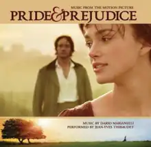 Pride & Prejudice (Music from the Motion Picture) is the soundtrack to the 2005 film of the same name and was composed by Dario Marianelli and performed by Jean-Yves Thibaudet (piano) and the English Chamber Orchestra. The movie Pride & Prejudice is a screen adaptation of the 1813 novel Pride and Prejudice by Jane Austen.[1]