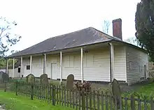 Providence Chapel (founded as Charlwood Union Chapel) is a former Nonconformist place of worship in the village of Charlwood in the English county of Surrey. Founded in 1816 on the outskirts of the ancient village, it was associated with Independent Calvinists and Strict Baptists throughout nearly two centuries of religious use. The "startling"[1] wooden building—remarkably un-English with its simple veranda-fronted style—had seen several years of service as an officers' mess at a nearby barracks. The chapel was put up for sale in 2012.[2] English Heritage has listed it at Grade II* for its architectural and historical importance. It was also on that body's Heritage at Risk Register because of its poor structural condition, but repairs were carried out and in 2019 it was deemed no longer at risk.