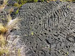 The Puna-Kāʻu Historic District is an archaeological district located on the Puna-Kāʻu coastline in Hawaii Volcanoes National Park. The district includes over 300 sites occupied by Polynesians from the 13th through 19th centuries. Eleven of the sites within the district are considered exceptionally significant to modern understanding of native Hawaiian culture and have been the focus of most archaeological research in the area. Five of these sites are villages, at Poupou-Kauka, Kailiili, Kamoamoa, Laeʻapuki, Keahou Landing; these village sites provide insight into the agricultural and social practices of the Polynesians. The Puna-Kāʻu coastal trail, another one of the significant sites, connected these villages and provided a link to communities in the mountains. The remaining sites include the Wahaulu Heiau temple, the Puuloa petroglyph site, a pulu factory, and two shelter sites used by fishermen and opihi pickers.[2]