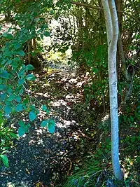 There O'Keefe Open Space Preserve protects the riparian habitat along an 800-foot (240 m) section of the creek below I-280. It is an 8.2-acre (3.3 ha) nature preserve. This section of the creek has been invaded by non-native species that compete with the native vegetation for its water, including Canary Island palm (Phoenix canariensis), common fig (Ficus carica), plum (Prunus), blue gum eucalyptus (Eucalyptus globulus), European olive (Olea europaea) and Siberian elm (Ulmus pumila).[8][9]