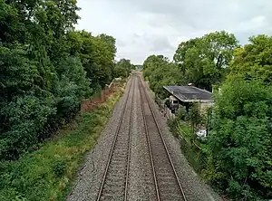 ![]() The former Purton Station seen from Widham road bridge in August 2023 | |
