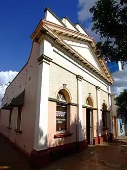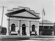 The Queensland National Bank was the first and most successful of Queensland's three indigenous 19th century banks. It was established in March 1872 by a group of prominent Queensland squatters, politicians, lawyers, and businessmen who wished to secure development capital free from overseas or intercolonial control. Its first office was established in Queen Street, Brisbane in that year and the bank attracted widespread Queensland patronage. In 1879 it secured the whole of the Queensland Government's banking business. By 1880 it held 40% of deposits in the colony and dominated the Queensland economy. This was not, however, the first bank established in Childers, the Bank of North Queensland and the Commercial Banking Company of Sydney both being present in the 1890s and erecting premises in the newly emerging sugar town in 1900.[1]