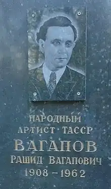 Räşit Wahap ulı Wahapov (Рәшит Ваһап улы Ваһапов, Russian: Раши́д Вага́пович Вага́пов, romanized: Rashid Vagapovich Vagapov; 1908–1962) was a Tatar singer (tenor), awarded with People's Artist of TASSR (1957). Wahapov was "one of the most actively and successfully performing Tatar singers in 1940s and enjoyed enormous popularity among a wide listening audience". In Kazan, capital of Tatarstan, a street is named after the singer.[1]