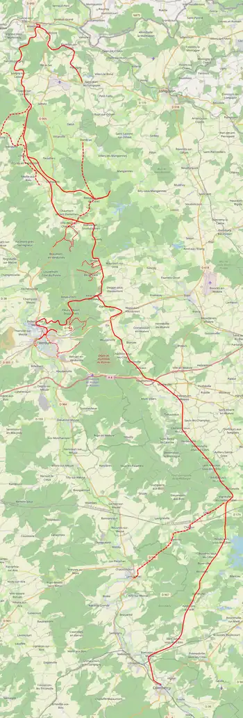 The Réseau de la Woëvre was a 149 km (93 mi) long metre-gauge rail network that operated from 1914 to 1938 in France. A 66 km (41 mi) branch line to Commercy branched off from the 61 km Verdun-Montmédy main line at Vaux-devant-Damloup.[14]