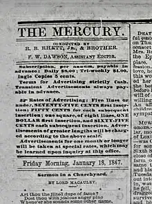 R. Barnwell Rhett Jr. (February 25, 1828 – January 29, 1905) was a Confederate-American thought leader who edited the pro-secession Charleston Mercury newspaper owned by his father, the Fire-Eater politician Robert B. Rhett.[1] He was later a Reconstruction-era editor of the New Orleans Times-Picayune.[2] He killed a New Orleans judge in a duel in 1873.[3]