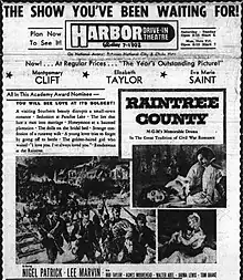 - ↑ ""Raintree County" with Montgomery Clift, Elizabeth Taylor and Eva Marie Saint". Harrison's Reports. Vol. 39, no. 41. October 12, 1957. p. 162. Retrieved April 21, 2020 – via Internet Archive.