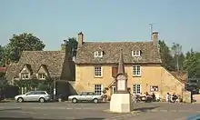 Ramsden is a linear village, lying east-west along an old road that intersects Akeman Street. Wychwood Lodge in the High Street was built late in the 16th century and had been extended by the middle of the 17th century. It is built of coursed Cotswold stone rubble with ashlar dressings and has a Stonesfield slate roof. The front doorway and the main ground floor fireplace are Tudor. The house is a Grade II* listed building.[9] Trades in Ramsden included a forge and attached cottage that were built in the middle of the 18th century. The forge is no longer trading, and has been converted into part of the attached cottage.[10]