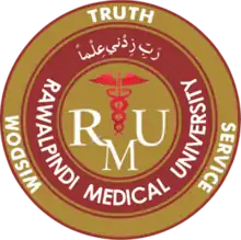 Rawalpindi Medical University (جامعہِ طبیہ راولپنڈی) is a public university located in Rawalpindi, Punjab, Pakistan.[1][2] It is affiliated with three public sector teaching hospitals (Holy Family Hospital, Benazir Bhutto Hospital & DHQ Hospital- Rawalpindi) for undergraduate and postgraduate medical education & training. It is also listed among the recognised universities and degree awarding institutions by the Higher Education Commission of Pakistan.[3][4]
