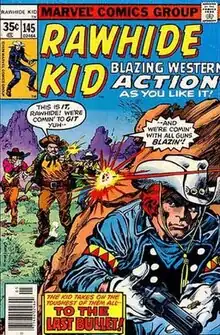 By 1973, as superheroes became increasingly ascendant, The Rawhide Kid became primarily a reprint title, though often bearing new covers by such prominent artists as Gene Colan, Gil Kane and Paul Gulacy. It ended publication with issue #151 (May 1979). This initial volume of the series included a single annual publication, cover-titled Rawhide Kid King-Size Special (Sept. 1971).[7] As well, reprints, including many Jack Kirby-drawn stories, appeared in the 1968-1976 title The Mighty Marvel Western.