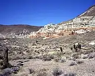 The area was once home to the Kawaiisu people. Some petroglyphs and pictographs are found in the El Paso Mountains and represent ritual sites from ancestors of the Coso people were early indigenous inhabitants of this locale. They created extensive carvings in rock within the El Paso and neighboring mountains of Red Rock Canyon.[2] and conducted considerable trade with other tribes as far as the Chumash on the Pacific coast.[3]