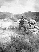 Prior to the construction of Major Carleton's monument, while waiting to rendezvous with the major at Mountain Meadows in 1859, assistant surgeon Charles Brewer was placed in charge of a burial detail by Captain Reuben T. Campbell of Camp Floyd. Brewer gathered the remains of 26 victims, burying them in three mass graves (located one and one-half miles north of where Carleton would construct his monument). Each of these gravesites were marked by a mound of stones.[6][7] Unlike the southern gravesite, the exact location of these graves was lost throughout time.