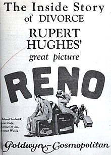 Reno is a 1923 American silent melodrama film produced and distributed by Goldwyn Pictures and was written and directed by Rupert Hughes.[1] Hughes provided his own story to the film which followed Souls for Sale.[2] The film stars Helene Chadwick and Lew Cody.[1]