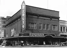 The Rialto Theater in Casper, Wyoming was built as the New Lyric Theater[2] in 1921. It was constructed with 800 seats by Henry Brennan who had a successful Vaudeville house, on which he based the new cinema.[3] He almost immediately sold the building in 1922 to new owner E.J. Schulte who invested $50,000 in a remodeling project designed by Casper architects William Dubois and Leon Goodrich. The reopening in 1922 featured the William C. deMille movie Nice People, a silent film that was accompanied by the Chicago Netto Ladies Orchestra. In 1928 the Rialto began to show talkies.[2]