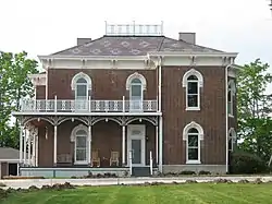 Richard M. Hazelett House, also known as Sunny Hill, is a historic home located at Greencastle, Putnam County, Indiana. It was built in 1868, and is a two-story, Italianate style brick dwelling. It has a slate cross-hipped roof and sits on a raised stone foundation. The house features tall arched double hung windows with decorative caps and a wraparound verandah. Also on the property are the contributing combination smokehouse / privy, barn, and wrought iron fence.[2]:5