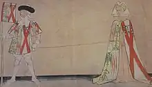 ![]() Richard Neville, 5th Earl of Salisbury depicted in the Salisbury Roll, c. 1483-1485, with tinctures of Neville arms transposed in error. He displays the arms of Montagu quartering Monthermer in the dexter position of honour. | |