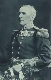 Promoted to rear admiral in February 1909,[7] Peirse was appointed Commander-in-Chief, East Indies Station in 1913.[8] Then promoted to vice admiral in October 1914,[7][9] he served in the First World War taking part in the attack on Smyrna in 1915,[10] where he outgunned the Turkish Fleet.[11] He continued in his role on the East Indies Station until December 1915.[12][13] He was promoted to admiral in March 1918.[14]