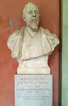 Richard Freiherr von Krafft-Ebing[1] (full name Richard Fridolin Joseph Freiherr Krafft von Festenberg auf Frohnberg, genannt von Ebing; 14 August 1840 – 22 December 1902) was a German psychiatrist and author of the foundational work Psychopathia Sexualis (1886).