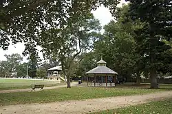 This pavilion has remained a dominant built feature since the 1880s and, although severely damaged by fire in 1980 and restored by 1994, it continues to bring a historic nineteenth-century resonance to the Park (.[1][5]