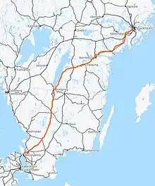 Riksväg 1's stretching between Helsingborg and Stockholm.