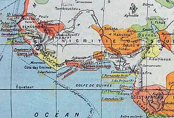 The background to these legalistic and administrative manoeuvres was the Berlin conference of 1884 and the "loaded pause" of French imperial expansion. Domestically, this stemmed from the disastrous French defeat in Tonkin and the collapse of the colonial policy of the Ferry ministry.[3] European horse-trading followed the Berlin conference, in which foreign powers divided the African continent and attempted to consolidate their own possessions. Rivières du Sud was a formal division which, apart from the coast, had little relation to actual governance until the next decade.