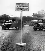 In 1855, another provincial decree provided for new signs consisting of kilometre markers, which also indicated the name (or number) of the road. Both decree established the basements of an organised sign system not only in Buenos Aires but in the whole country.[4] In 1885, engineer Jorge Coquet designed a sign system which is considered the first organised system in the country. The system was a complete program that include measurements, heights, types of plaques, among other specifications.[4] Those signs were popularly known as "Coquet signs".[5]