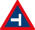 Roadway narrows from the left side ahead