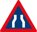 Roadway narrows from both sides ahead