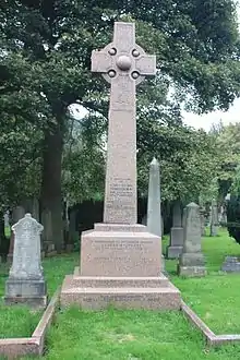 In his later years, Chambers was for a long time in delicate health and spent most of his time at North Berwick or St. Andrews. He died of an affection of the heart on 23 March 1888 at his house in Claremont Crescent in the eastern New Town, Edinburgh.[2] He is buried on the north side of one of the central paths in Dean Cemetery in Edinburgh.