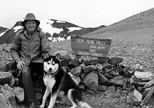 ![]() Brinton and his dog Toki atop Koip Peak Pass, 1983 | |