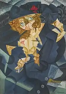 Severini later explained that as well as being a formal experiment in painting, the work reflected the "psychological relationship between the artist and the sitter".[7] In April 1913, he wrote to Marinetti, "I am Sée's guest, I am guzzling his food and sleeping in his house (the organisation of his house is immense, grand); but this state of affairs cannot go on and I have to cross the Channel as soon as possible", adding revealingly, "Watching the blonde Madame Sée grow old is a pleasure; she is becoming ugly and sick of men".[10]