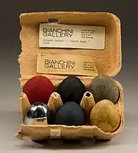 Black Eggs, 1964, a piece included at the American Supermarket exhibition at New York's Bianchini Gallery. This piece is now in the National Gallery of Art, Washington