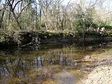 Rock Creek in Chevy Chase, Maryland. The stream bank shows downcutting (vertical erosion) due to stormwater runoff.