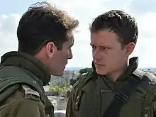 There is a dual focus lives in fear of being accused of collaborating with the Israeli soldiers, and on the young soldiers: sensitive, clean-cut Tomer (Yon Tumarkin); Haim (Iftach Rave) whose crude complaining about the food and his intestinal distress gives the film some laughs; feisty, hotheaded Aki (Roy Nik) who challenges the group's leader, marijuana-smoking Ariel (Yotam Ishay), who will muster out of his mandatory army service if he survives the next few weeks.[1]