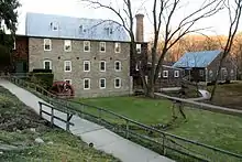 Rockland Historic District is a national historic district at Brooklandville, Baltimore County, Maryland, United States. It is located at the intersection of Old Court Road and Falls Road, where Old Court turns into Ruxton Road. There are 15 buildings in the area, including a general store, tavern, the shell of a blacksmith shop, a carriage house, several log buildings, a group of stone rowhouses, the Rockland Grist Mill, and an 18th-century dwelling. It is one of the surviving examples of a small, quiet, sylvan community of the early 19th century.[2]