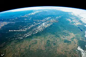 Rocky Mountain Trench, astronaut photo from ISS, 2014