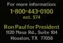 - 1 2 3 Rosenthal, Andrew (October 17, 1988). "Now for a Real Underdog: Ron Paul, Libertarian, for President". New York Times. Retrieved 20 May 2010.