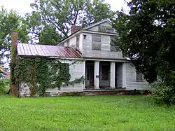 The smokehouse, constructed around 1850, is built of hewn logs and is accessed by a board and batten door with iron hinges. The double-cantilever barn, built late-19th century, is a double-pen barn retaining much of its original cantilevered form, although a tractor shed was later added to the barn. The hay barn, located across the street from the main house lot, is a rack-sided barn with a gambrel roof, built in the 1920s. Except for the smokehouse, all the outbuildings are frame structures.[3]