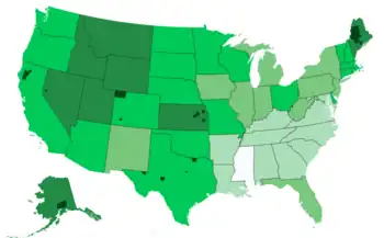 On Election Day, Perot finished in third place behind Clinton (the winner) and Bush. Perot received 19,743,821 votes, the most ever received by a non-major-party candidate, which accounted for 18.91% of the popular vote. He failed to win any states in the Electoral College because of the relatively even distribution of his support, but did win over 30% of the vote in Maine and 27% in Utah, finishing second in both states.[104] Perot was the first non-major-party candidate since George Wallace in 1968 to finish first in a county. Notably, Perot managed to win counties in states won by Clinton (specifically California, Nevada, Colorado and Maine) as well as in states carried by Bush (these being Alaska (divided into boroughs), Kansas and Texas). He won his largest percentage in Matanuska-Susitna Borough, Alaska and Loving County, Texas with over 40%. He finished second ahead of either Bush or Clinton in a further 345 counties.[105] According to exit polls, 52% of Perot's supporters were male, 94% were white, 63% were aged between 18 and 44, and about 2/3 had not received a college degree. The income of supporters mirrored the general public. In terms of ideology, 53% identified as moderates, 27% were conservative and 20% were liberal, while two-thirds were either members of the Democratic Party or were politically independent.[30]