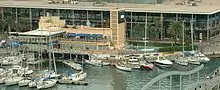 This club is located at one end of Barcelona harbor, close to where la Rambla meets the sea, by the "Maremagnum" shopping mall and aquarium complex. The RCMB is a well-equipped yacht club, with its own delimited area situated very close to its rival Royal Barcelona Yacht Club (Reial Club Nàutic de Barcelona), which is considered more elitist. The RCMB's area is an "administrative concession" from the Barcelona Port Authority. It houses the club's premises, where there is a cafeteria cum restaurant specialized in fish dishes.[1]