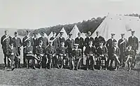 Post war, a commission was set up to consider the shape of the Territorial Force (Territorial Army or TA from 1 October 1921). The experience of the First World War made it clear that cavalry was surfeit. The commission decided that only the 14 most senior regiments were to be retained as cavalry (though the Lovat Scouts and the Scottish Horse were also to remain mounted as "scouts"). Eight regiments were converted to Armoured Car Companies of the Royal Tank Corps (RTC), one was reduced to a battery in another regiment, one was absorbed into a local infantry battalion, one became a signals regiment and two were disbanded. The remaining 25 regiments were converted to brigades[lower-alpha 1] of the Royal Field Artillery between 1920 and 1922.[22] As the most senior regiment in the order of precedence, the regiment was retained as horsed cavalry.[11]