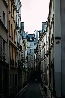From the 18th to late 20th centuries, the street was a hub of the Parisian bookstore business. A bookshop affiliated with the Maoist Union des jeunesses communistes marxistes-léninistes operated at No.6 from 1967 to 1978, bankrolled by the wealthy grandmother of activist Tiennot Grumbach,[7] and gave its name to the short-lived far-left publishing house Editions Gît-le-Cœur. A trade association of sellers of ancient books, the Syndicat de la Librairie Ancienne et Moderne, has been located at No.4 since 1985.[8] As of 2021, two bookstores remain in the street: Librairie Kronis at No.4 and Un Regard Moderne at No.10, the latter opened in 1991.[9]