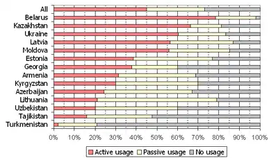 - ↑ Zubacheva, Ksenia (16 May 2017). "Why Russian is still spoken in the former Soviet republics". Russia Beyond The Headlines. Archived from the original on 15 June 2017. Retrieved 10 June 2017.