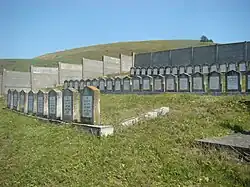 After Romania left the Axis Powers and joined the Allies during World War II, between 5 September and 10 October 1944, Sărmașu came under the occupation of the Nazi-aligned Hungarian troops. During this period, Hungarian gendarmes and members of the Hungarian National Guard, led by captain of gendarmes Lánczos László, killed 126 local Jews (out of 142 who were living in the city at the time),[2] as well as 39 Romanians, the latter primarily prisoners of war captured in the battles on the alignment of Oarba de Mureș–Luduș–Gheja–Chețani,[3] during the Battle of Turda.