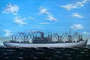 SS Sea Marlin was a C3-S-A2 cargo ship operated for the War Shipping Administration (WSA) by Grace Lines during World War II.[2] WSA allocated Sea Marlin to United States Army requirements.[3] Sea Marlin was crewed by United States Merchant Marines, with a contingent of the US Naval Armed Guards for the guns and had a complement of the US Army Transportation Corps (Water Division) aboard for troop administration.[4]