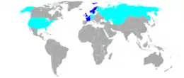 ![]() Map of Participating Sailing Countries at the 1920 Summer Olympics ● Green = Participating for the first time ● Blue = Participating ● Light Blue = Have previously participated |