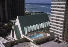 Saint Augustine by the Sea Catholic Church is a parish of the Roman Catholic Church of Hawai‘i in the United States. It falls under the jurisdiction of the Diocese of Honolulu and its bishop; it is staffed by the Congregation of the Sacred Hearts of Jesus and Mary. Located at 130 Ohua Avenue, adjacent to Kalākaua Avenue in Waikiki, Saint Augustine by the Sea ministers primarily to visitors, as Waikiki contains the highest number of domestic and international visitors in the State of Hawai‘i.