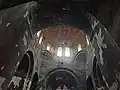 St. Gevorg has a single large Byzantine-style red tile, octagonal umbrella dome that is centered over the church. The style of domed roof is uncommon in Armenia, especially on larger structures. The dome sits above an octagonal drum that is pierced by twelve small windows; pairs of windows on each of the four sides, and single windows on the other four sides. The church was renovated at least once.[1]